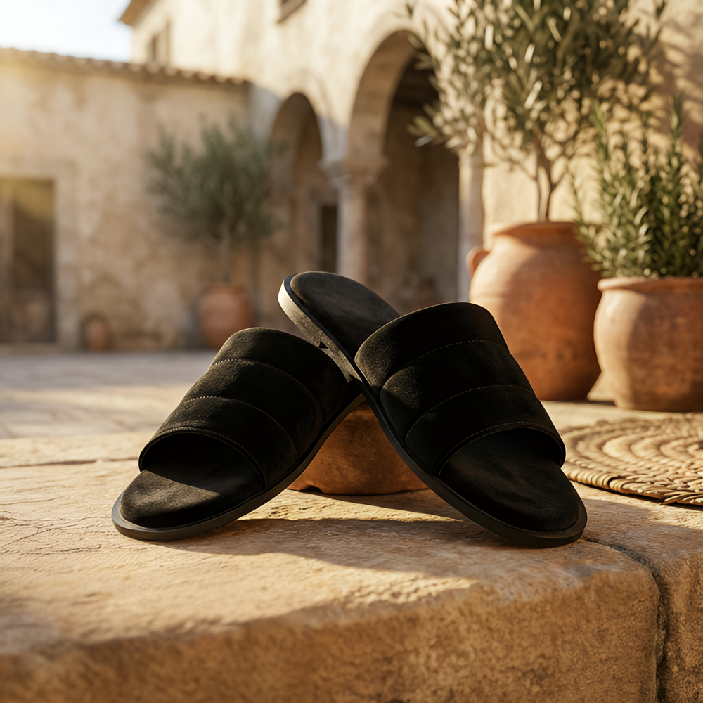 Handmade velvet slippers designed for style and comfort. Featuring a durable sheet outsole and soft leather inner lining for a smooth feel. The premium velvet upper adds an elegant touch, making these lightweight slip-ons perfect for casual wear and everyday use.