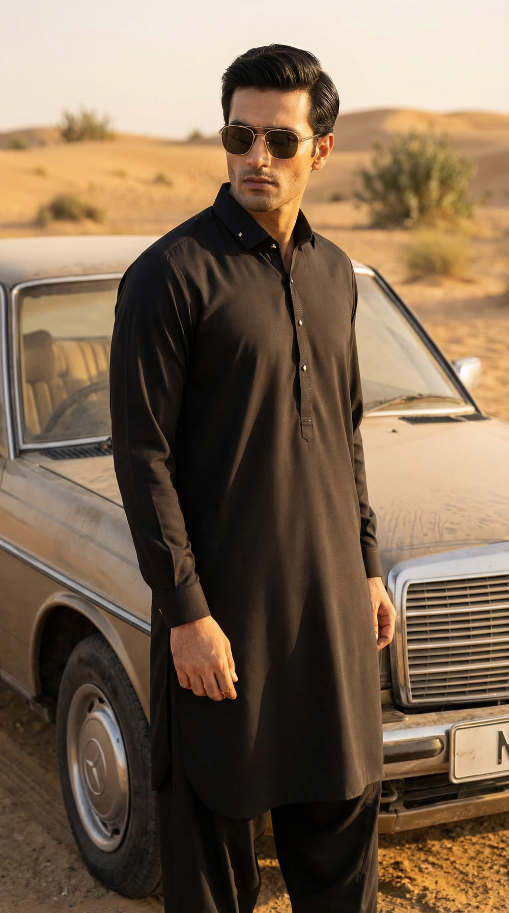 Make a strong statement with this jet black shalwar kameez, crafted for a bold and confident look. The deep black shade adds authority and timeless appeal, making it suitable for evening wear, formal events, and modern traditional styling.