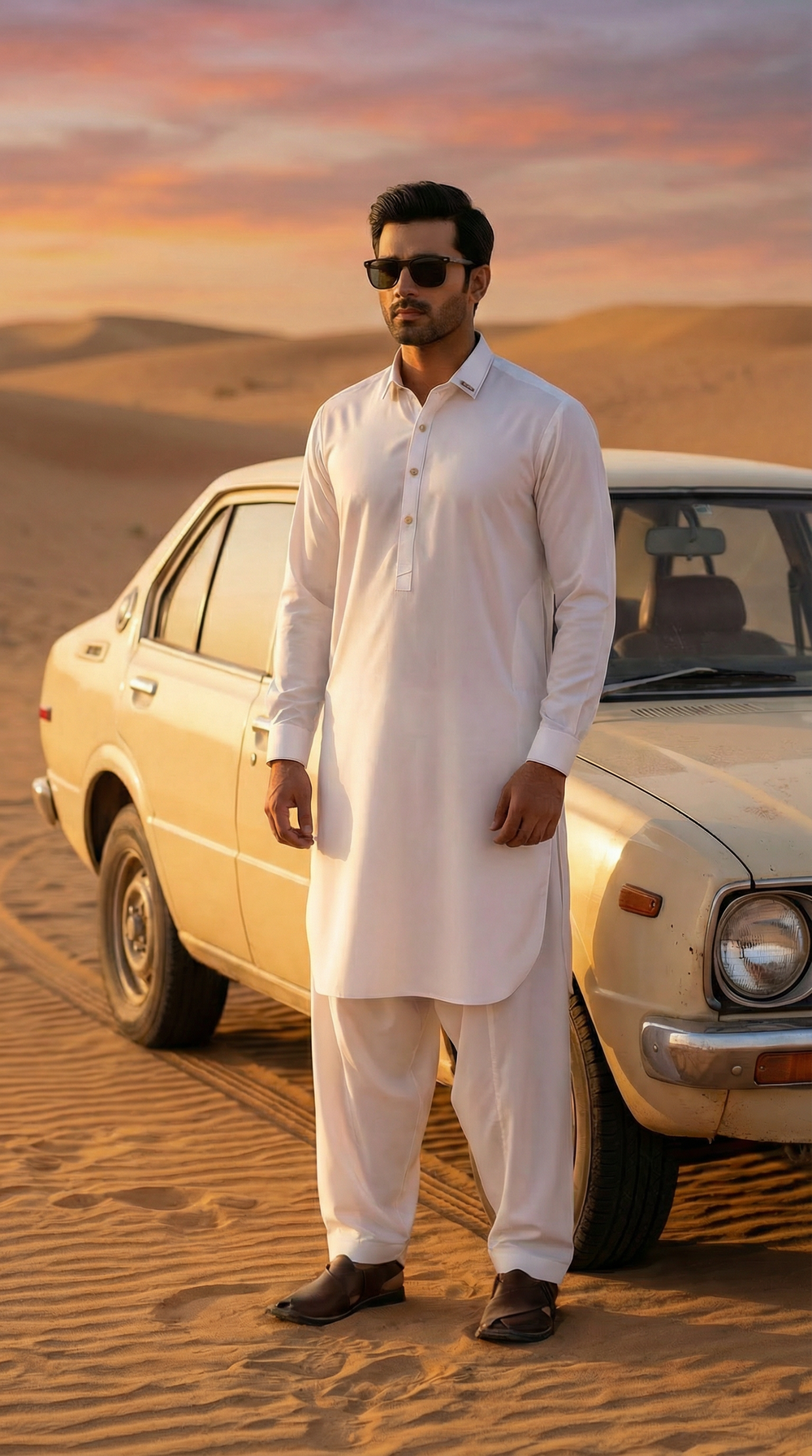 This pure white shalwar kameez represents elegance at its finest. Designed for men who prefer a clean, graceful look, this outfit delivers a sharp yet relaxed appearance. The bright white tone enhances sophistication and makes it ideal for Eid, Jummah, festive occasions, and formal gatherings.